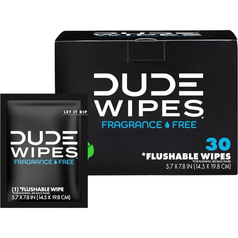 DUDE Wipes – On-The-Go Flushable Wipes, 30 Wipes, Unscented, Extra-Large