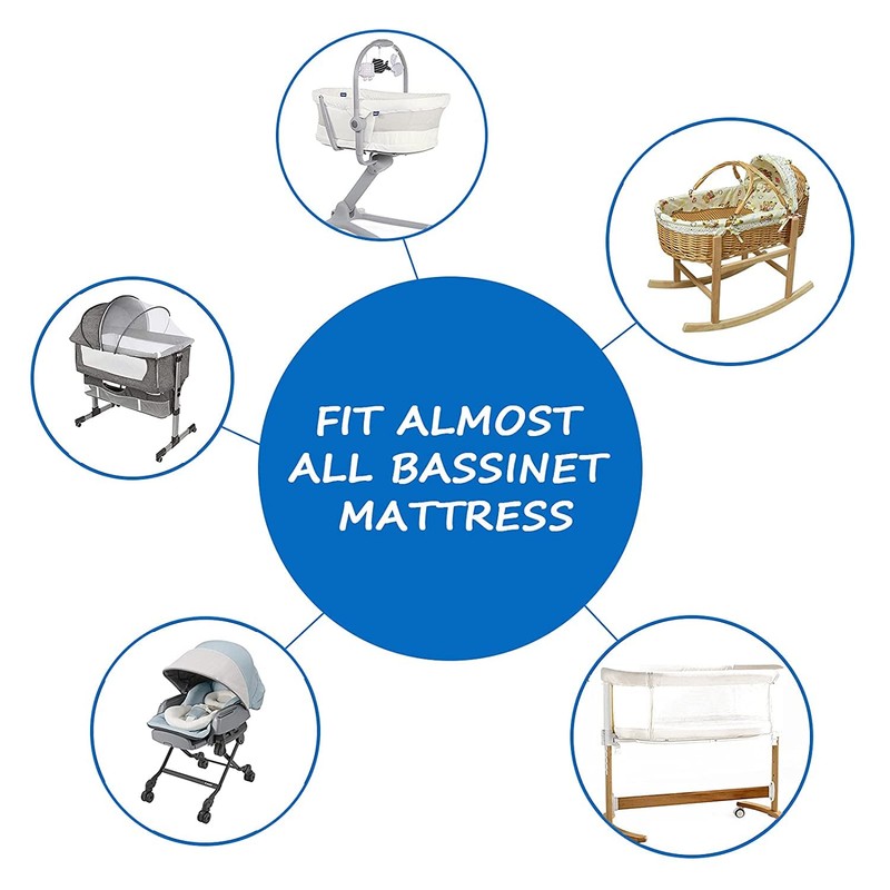 Dudu N Girlie Moses Basket Sheets Fully Fitted – 75 x 30 Moses Basket Bedding - Hypoallergenic Baby Pram Sheets Bedding Elasticated Breathable Easy Care (Pack of 2, Cream & Blue)
