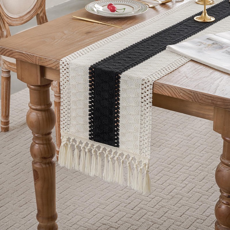 - Exquisite Craftsmanship: intricately woven with meticulous attention to detail, featuring delicate tassel embellishments along the edges, this table runner showcases impeccable craftsmanship, adding a touch of sophistication to any table setting.