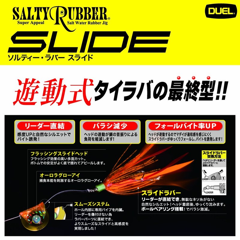 DUEL(デュエル) ルアー タイラバ ソルティー・ラバー スライド 60g OGR F1083-OGR-オレンジレッド 遊動式