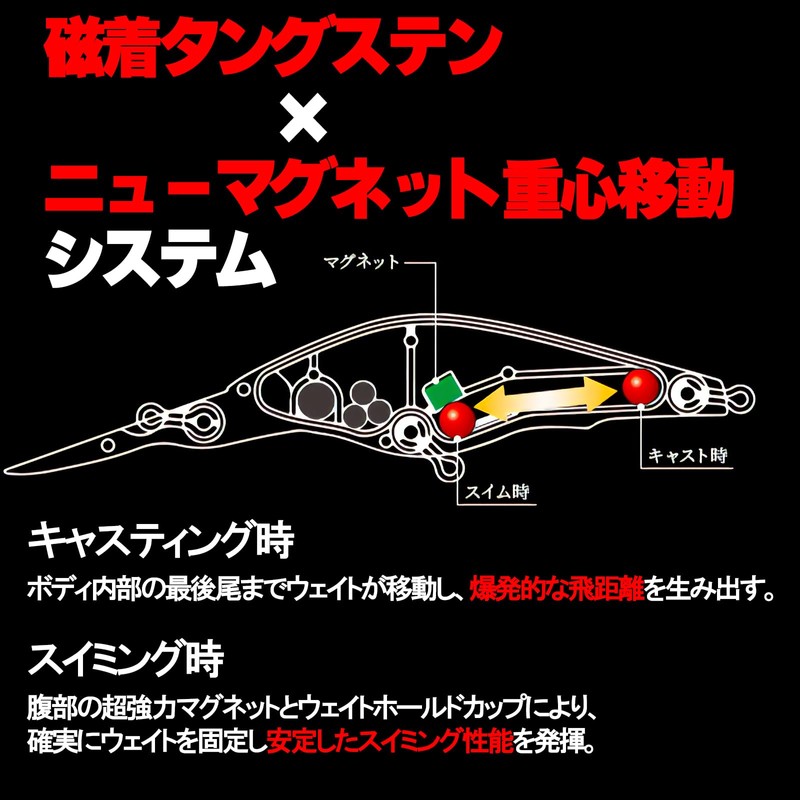 - Magnetic deposited tungsten x new magnetic center of gravity transport system: Achieves even greater distance