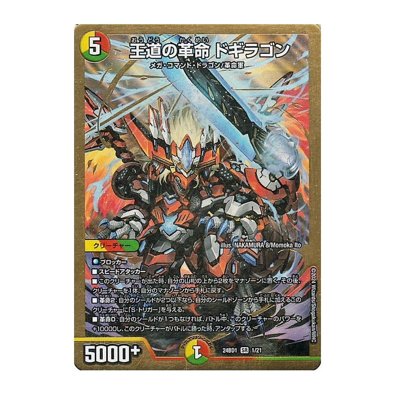 - Duel Masters TCG "Dream Hero Tan Deck" (DM24-BD1) Recording; Card Name: Revolution of the Royal Dogillagon; Card Name: Dogiragon, Royal Revolution; Rarity: Super Rare; Type: Creature; Civilization: Light/Fire/Natural Civilizations; Race: Mega Command Dragon/Revolution