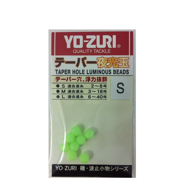 - テーパー夜光玉■サイズ:S/M/L■直径:S/Φ5.5、S/Φ7.5、S/Φ9.5●夜光色●転がり防止48面カット