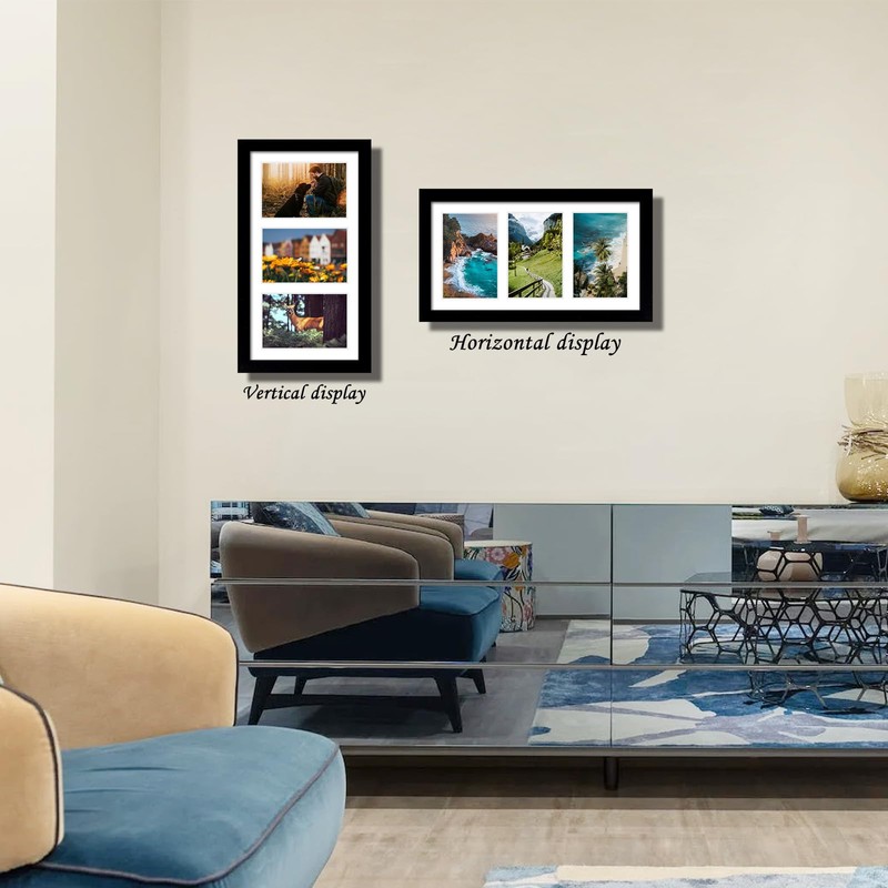 - Size: DUENPY 8x14 collage picture frame, display three 4x6 inch photos to create your exclusive photo wall, photo frame includes white cardboard mat, with strong hanging hardware, can be easily displayed horizontally and vertically.