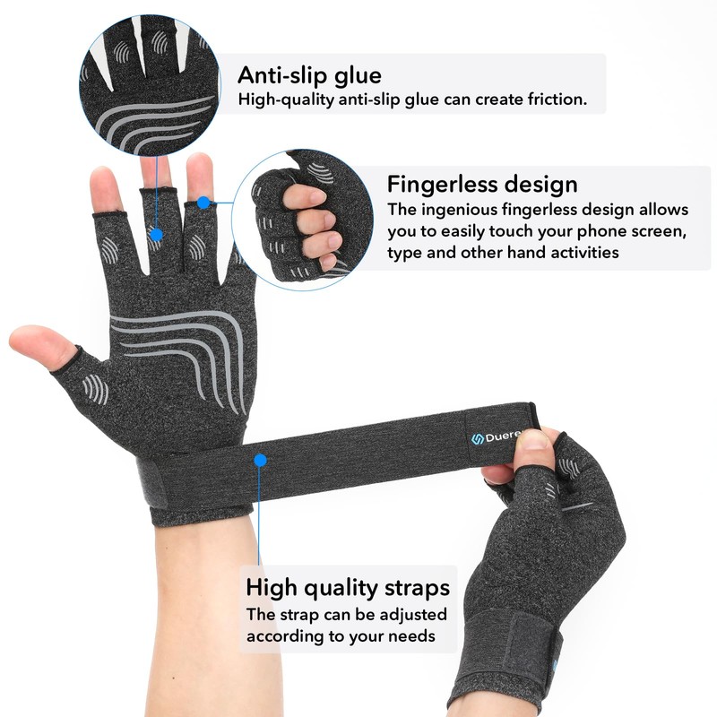 - [Relieves All Types of Hand Pain] Dueerer arthritis gloves are specially designed for people who have hand pain problems, you can get the comfort you want in this arthritis gloves. We've also been helping people with hand pain, arthritis, carpal tunnel, tendonitis, stiff or sore muscles and more.