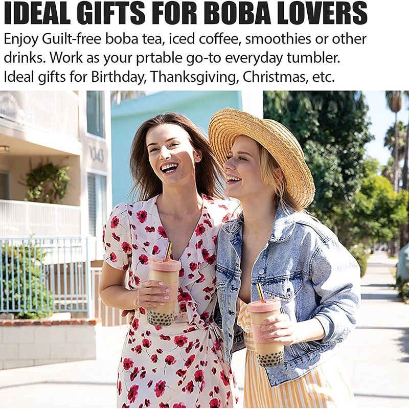 The reusable bubble tea cup fits in your hand and standard car cup holders. Portable to carry in your pocket or car cup holder. The reusable 24 oz mason jars can be your everyday tumbler for travel, on the go, school, office, work, shopping, picnic, etc. The cup is suitable for tapioca beads, bubble tea, water, smoothies, iced coffee, juices, milkshakes, protein shakes and more drinks.