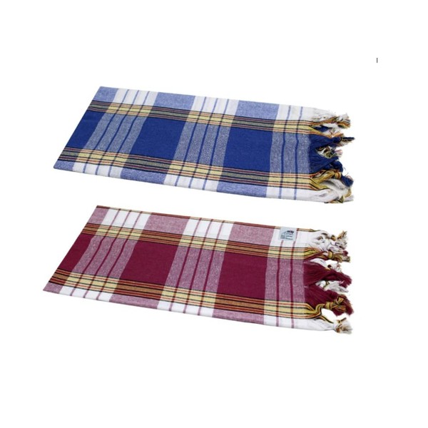 Dufte Momente 2 x Peshtemal "Hammam Towel" Classic Checked Blue and Red – Approx. 80 x 180 cm – 80% Cotton, 20% Polyester