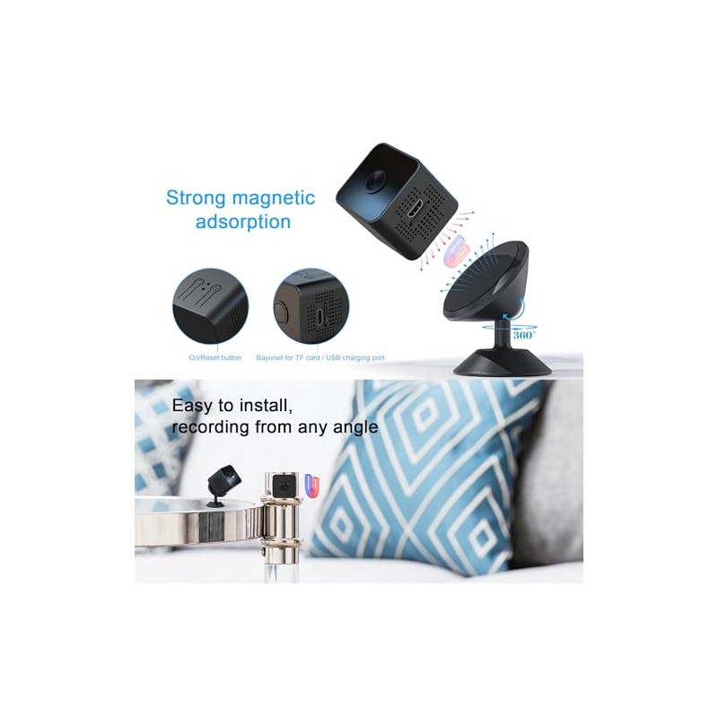 - Easy to Use - Set up in minutes turn on the mini camera, connect to wifi and add it to the application. Designed for you to set up easily. No wiring required, no complicated installation.-5-015