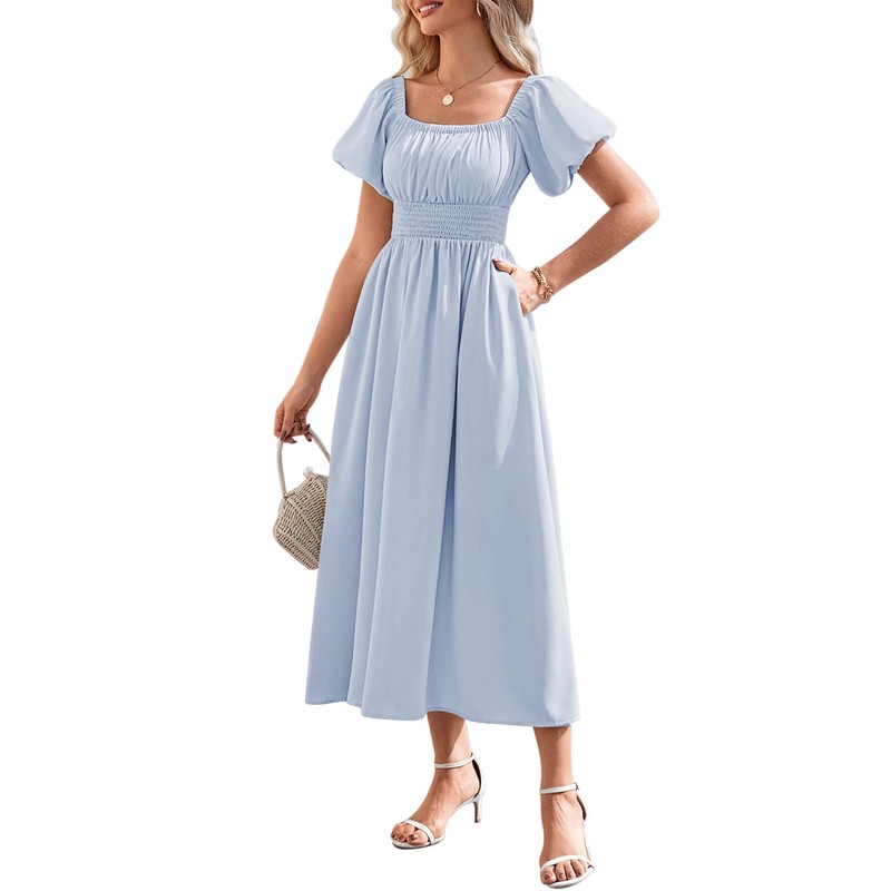- Eye-catching design: attractive U-neck design and ruched chest area beautifies your neck and bustline making you look sexier and flattering at the same time; Playful puffed sleeve, a-line midi dress with insert pocket, elasticized waist to visually lengthen the legs