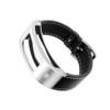 DuiGong Compatible with Garmin Vivofit 1/2 Bands Replacement, Leather Strap with Silver Stainless Steel Hardware - S/M & M/L (Black)