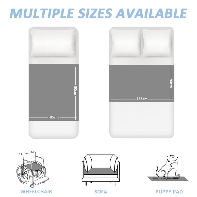 A variety of sizes are available: 33"-35" (85x90 cm): suitable for postoperative recovery, maternity care or mild incontinence, can be easily placed on the bed; 35"-53" (90x135 cm): large enough for long-term bedridden patients, can provide better coverage and prevent dirty sheets.