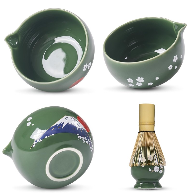 - 【 Unique Design of Japanese Serenity】DUJUST matcha set’s unique design evokes Japanese serene beauty, inspired by Mount Fuji’s glow and cherry blossoms. On the ceramic bowl’s earthy green glaze, the red rising sun crowns Mount Fuji, and cherry blossoms bloom and flutter before your eyes. On a leisurely afternoon, just immerse yourself in savoring the best matcha on your palate.
