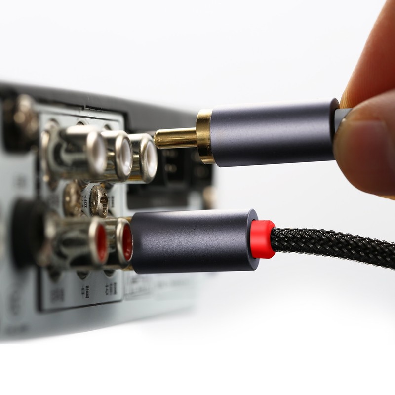 - DuKabel 3.5 mm 2 RCA Y cable has 1 x Aux jack plug and 2 x RCA plug. The jack RCA cable is ideal for connecting MP3 player, CD player, laptop, tablet and other digital devices with a 3.5 mm audio jack to stereo full amplifier, phono amplifier, AV receiver, TV and other sound systems with 2 RCA connections.