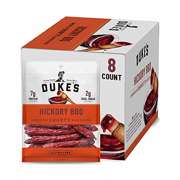 - Contains eight 5-ounce bags of Duke's Hickory Peach BBQ Smoked Shorty Sausages