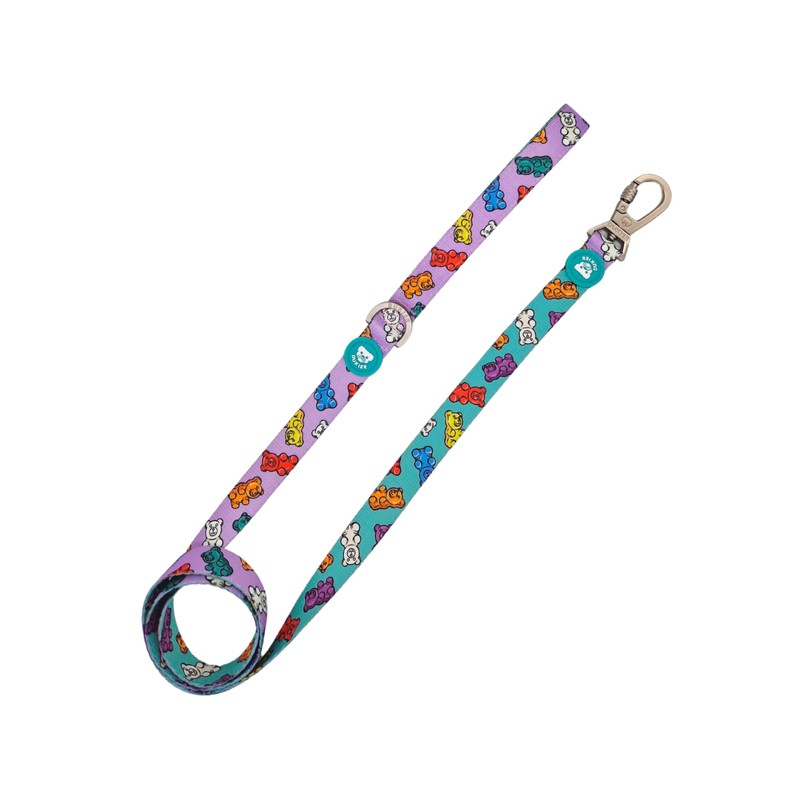DUKIER - Long and durable dog lead with safety carabiner made of neoprene,Gummy Bears design, size S