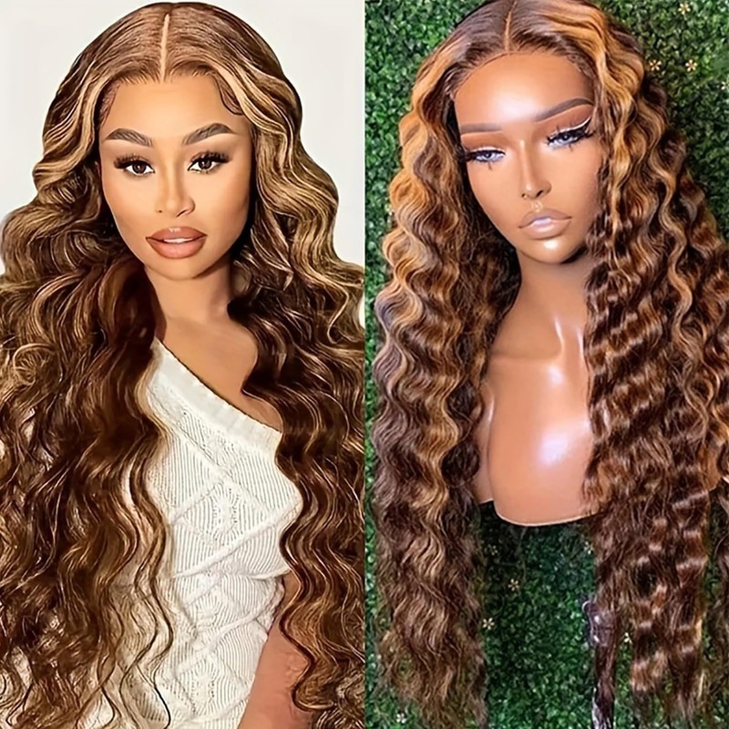 - Highlight deep wave lace front wigs human hair material: 13x4 lace front wigs human hair honey blonde, 9A unprocessed 100% brazilian virgin human hair, silk, soft and full.