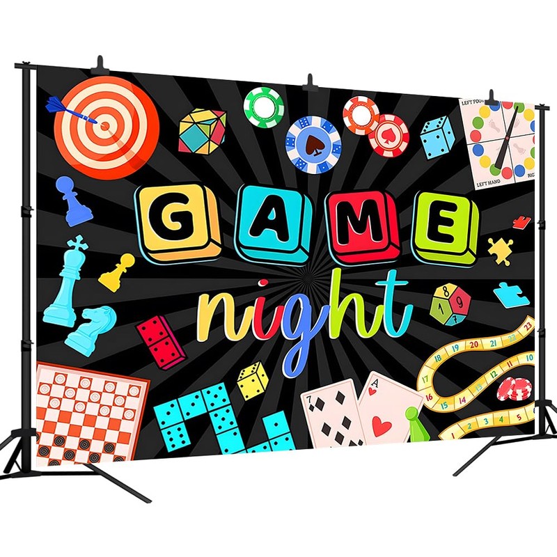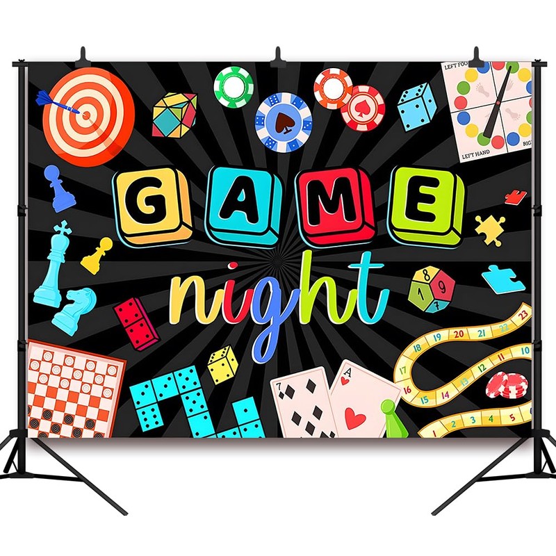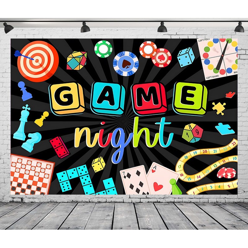 DULUDA 7x5 FT Game Night Backdrop Adults Chess Card Game On Photography Background Board Game Game Night Party Decorations for Party Supplies Banner Photo Booth Props