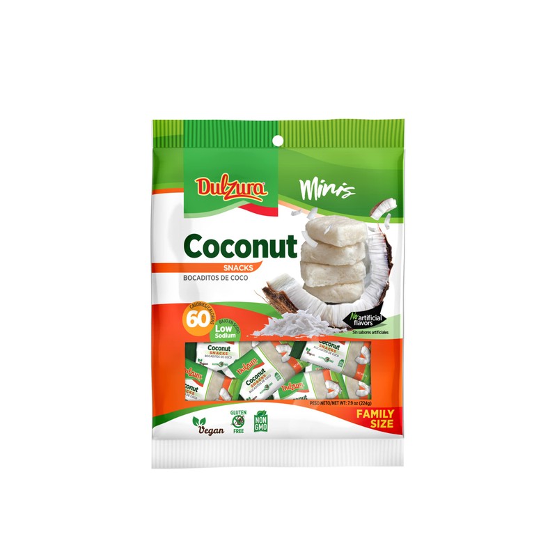 Dulzura Borincana Vegan Coconut Bites Snack Bars (Individually Wrapped), 7.9 Ounce Bag