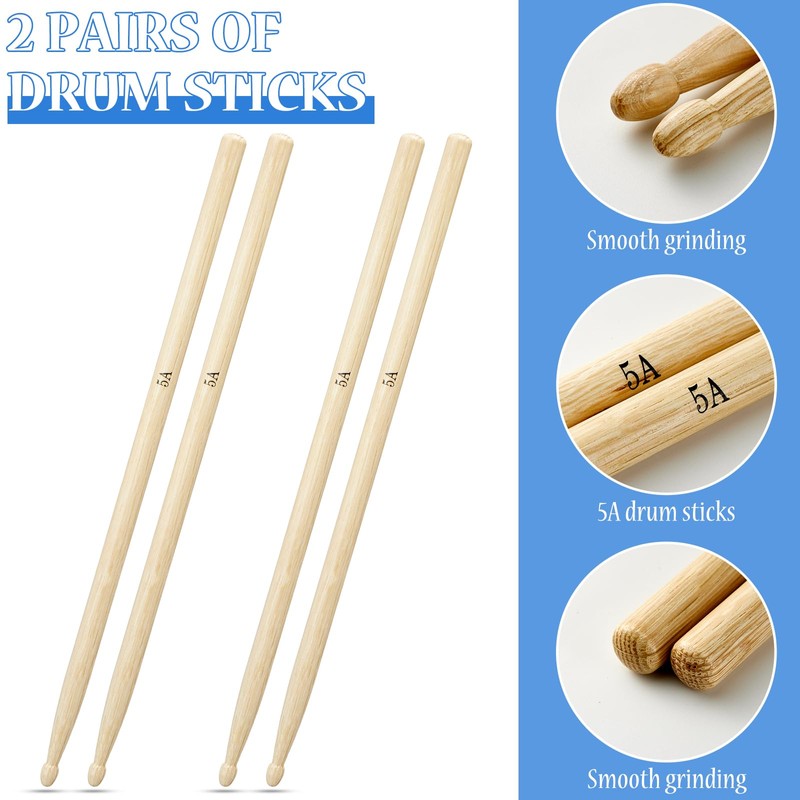 - [Practice Drum Pad Set] This drum practice pad set includes one 12-Inch drum practice pad, two pairs of 5A drumsticks, and one drum practice pad carry bag. Perfect for drum practice and performance.