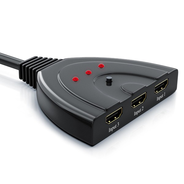 - Anschlüsse: 3× HDMI-Input A-Typ Buchse / 1× HDMI-Output A-Typ Stecker | Kabellänge ca. 48 cm