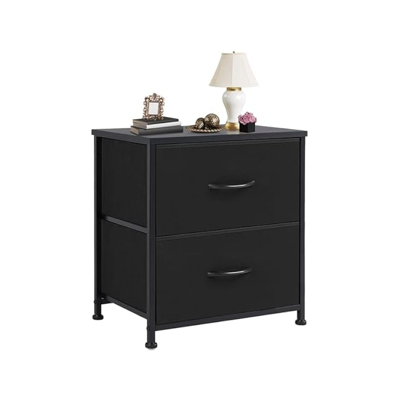 DUMOS Nightstand Small Dresser with 2 Fabric Drawers Side Tables Bedroom End Table Bedside Storage Furniture for 20 inch Tall Night Stand for Entryway, College Dorm, Classic Black