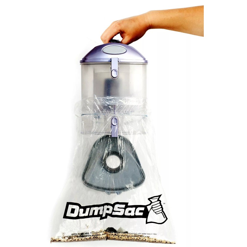 Let's face it.... there is a LOT of YUCK invacuum dirt! Are you tired of needing to vacuum again (or take a shower) afteremptying your bagless vacuum canister? DumpSac® is the patented solutionto the dust EXPLOSION experienced when emptying your bagless vacuum. The clearbag has elastic at the top to hug the canister, adhesive strips which stick tothe canister that enable 360° sealing capability during dirt transfer, and doubleto fold over the top to securely close dust in the bag for dropping cleanly inthe trash. Also useful as a disposal bag in your car, on the go, or as a linerin small size trash cans.