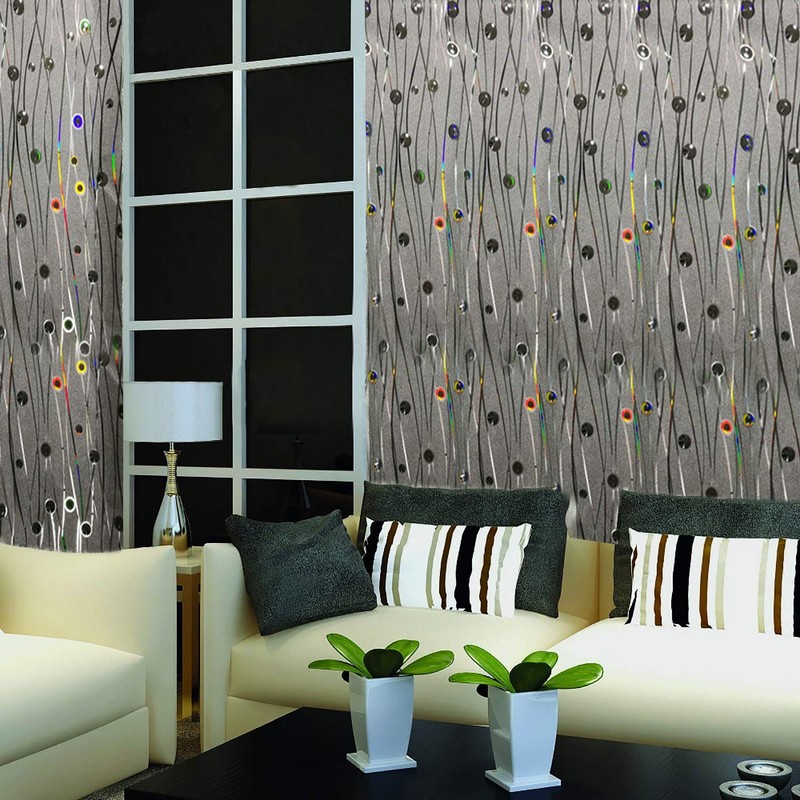Dundee Deco AZ-G021 Abstract Glitter Silver, Charcoal, Yellow, Blue Circles, Waves Peel and Stick Self Adhesive Removable Wallpaper, Roll 18 ft. X 18 in. (5.5m X 45cm), 26.6 sq. ft. (2.5 sq. m)