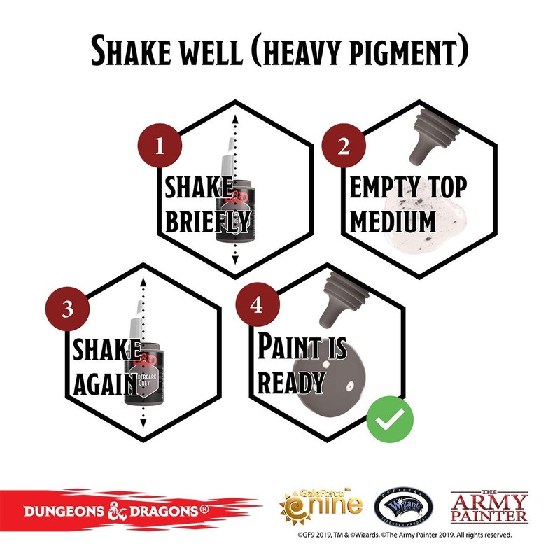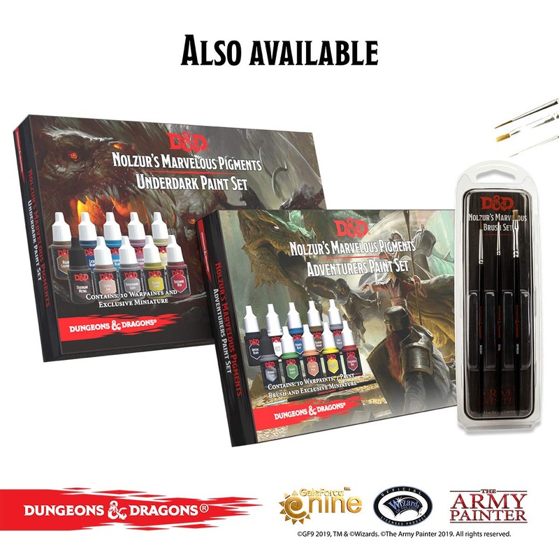 - EXPAND YOUR COLLECTION – Combined with the Adventurers Paint Set this selection of 36 water-based acrylic paints, including 3 metallic paints, 3 Washes and 1 effects paint, will give you the perfect colour palette to paint any creature from the Monster Manual. Nolzur’s Marvelous Pigments is our premium D&D brand, ensuring you great and affordable quality and variety when you start out your epic fantasy miniature painting quest!