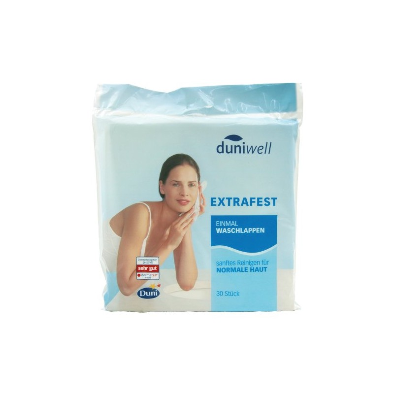 Duniwell gently cleaning disposable washcloths are particularly tear-resistant, chlorine-free bleached and dermatologically tested.
