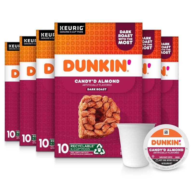- Contains six (6) 10-count boxes of Dunkin′ Candy'D Almond artificially flavored coffee pods