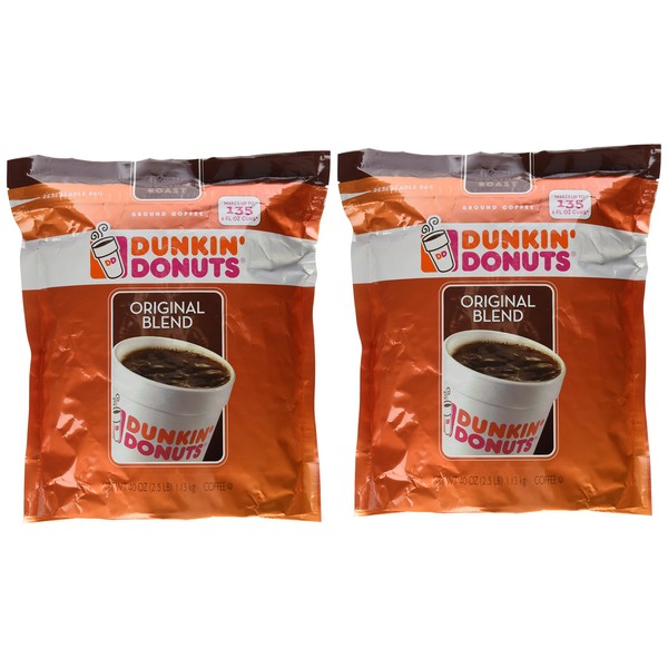 Dunkin' Donuts Original Blend Medium Roast Ground Coffee 100 % Premium Arabica Coffee 40 oz. (Pack of 2)
