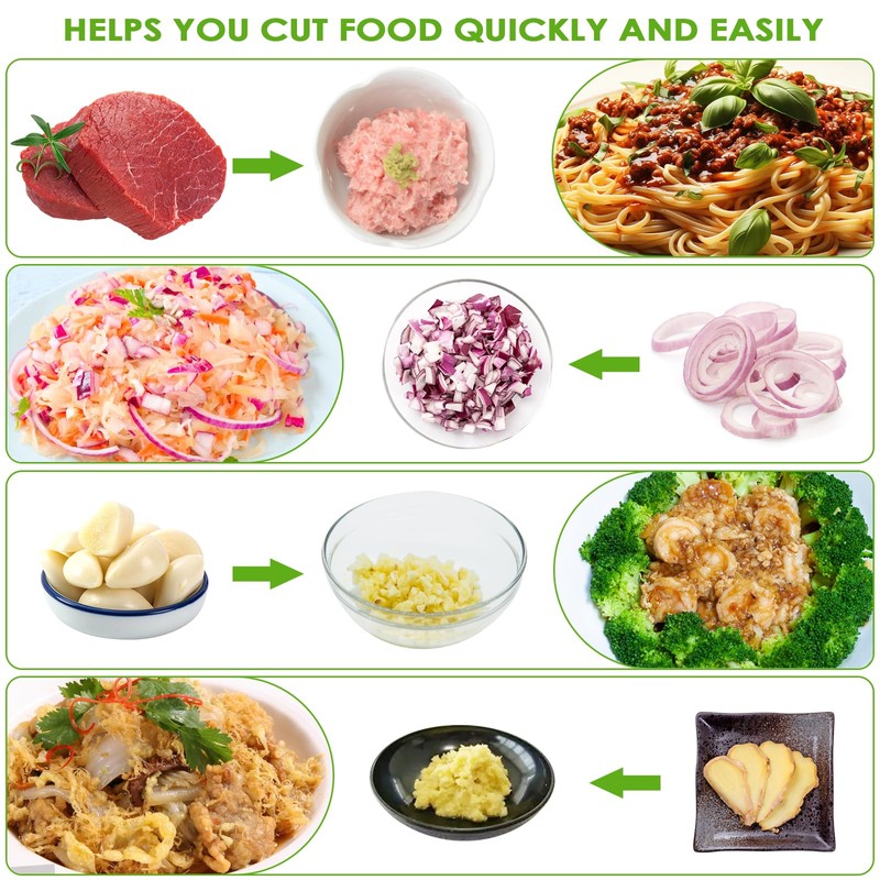- Easy to use: vegetable cutter put the food to be shredded into the multi-purpose chopper with 5 sharp stainless steel blades, cover the lid and tighten it, pull the rope to chop the food. The more you pull the rope, the finer the food will be, saving you a lot of time.