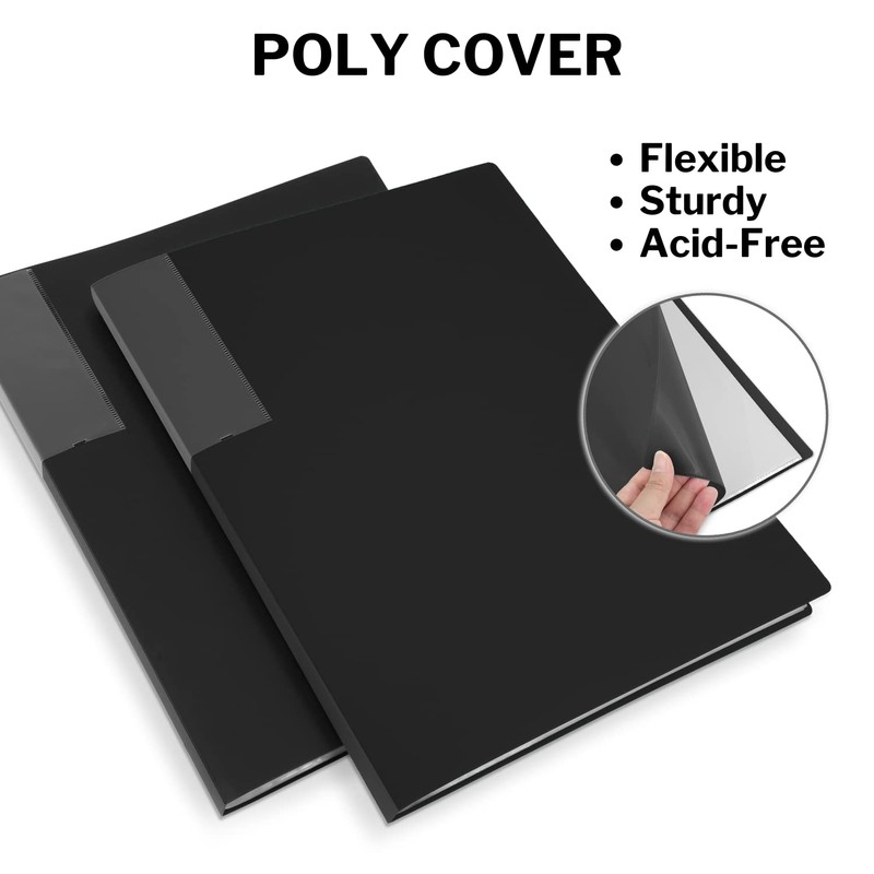 - Includes: 1 Black plastic 9x12 binder folder with 24 bound (non-refillable) top-loading plastic binder sleeves, 12 x 9 folder displays 48 viewable pages of 9x12 content, A4 or 8.5x11 Letter Size paper