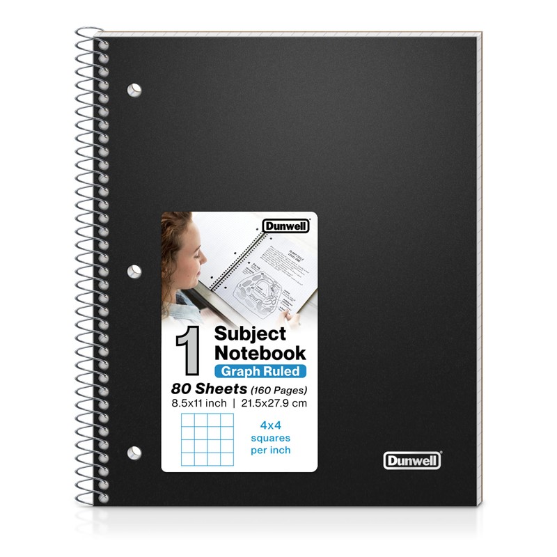 - Graph Ruled Spiral Notebook: Black plastic cover resists moisture, Protects your valuable class notes, assignments, and homework.