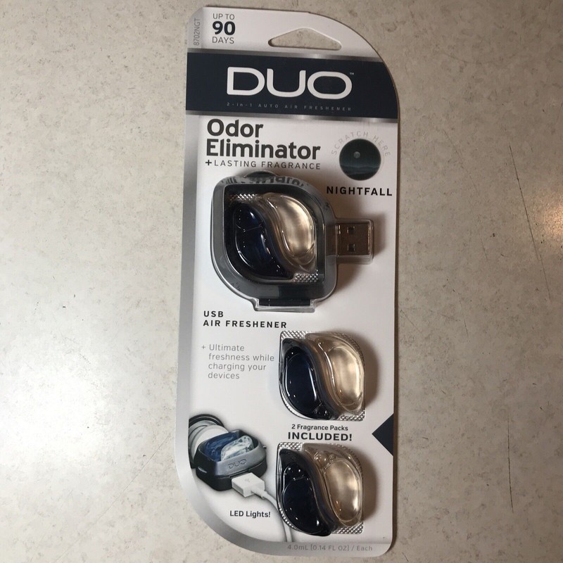 Duo 3-Pack Duo USB Car Air Freshener Odor Eliminator Essential Oil Nightfall 90 Days