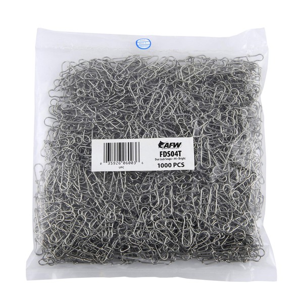 Duo Lock Snaps, Size #4, 50 lb (23 kg) Test, Bright, 1,000 pc