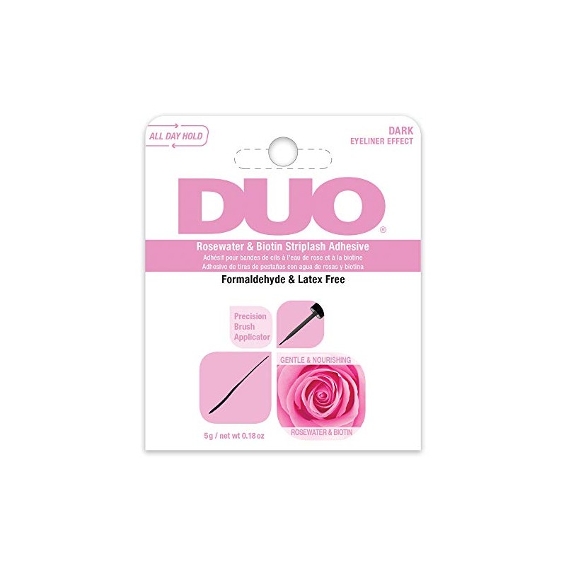 - Soothes & Nourishes Lash Line: Infused with Rosewater and Biotin, this incredible DUO Brush-on Strip Lash Adhesive calms and gives the lash line a boost. Fortified with Vitamin A, C, and E for healthy lashes. Ideal for sensitive eyes, contact lens users and faux lashes.