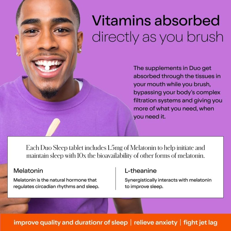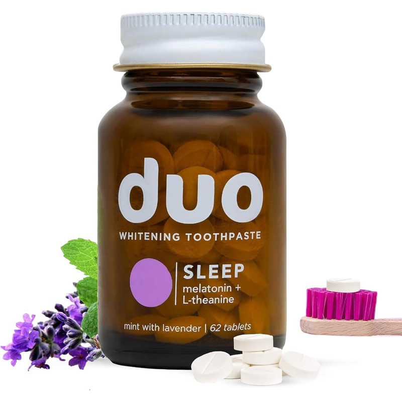 Duo Sleep Toothpaste Tablets with Melatonin & Nano-Hydroxyapatite | Whitening, Remineralizing, Sensitivity Relief | Sustainable, Plastic-Free, Mint & Lavender Flavor | 1 Bottle, 62 Tablets