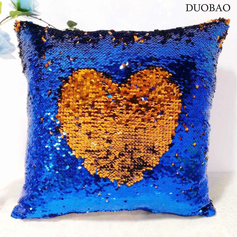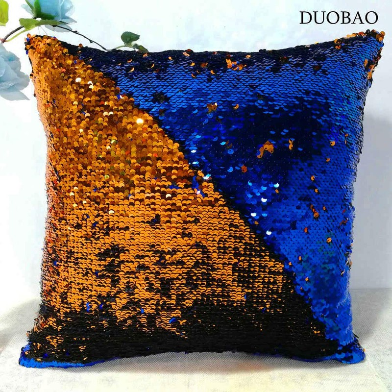 DUOBAO Sequin Pillow Royal Blue to Orange 20x20 Inch Flip Mermaid Pillow Case for Baby Magic Mermaid Sequin Reversible Sequence Pillows Covers Sequin Change Color