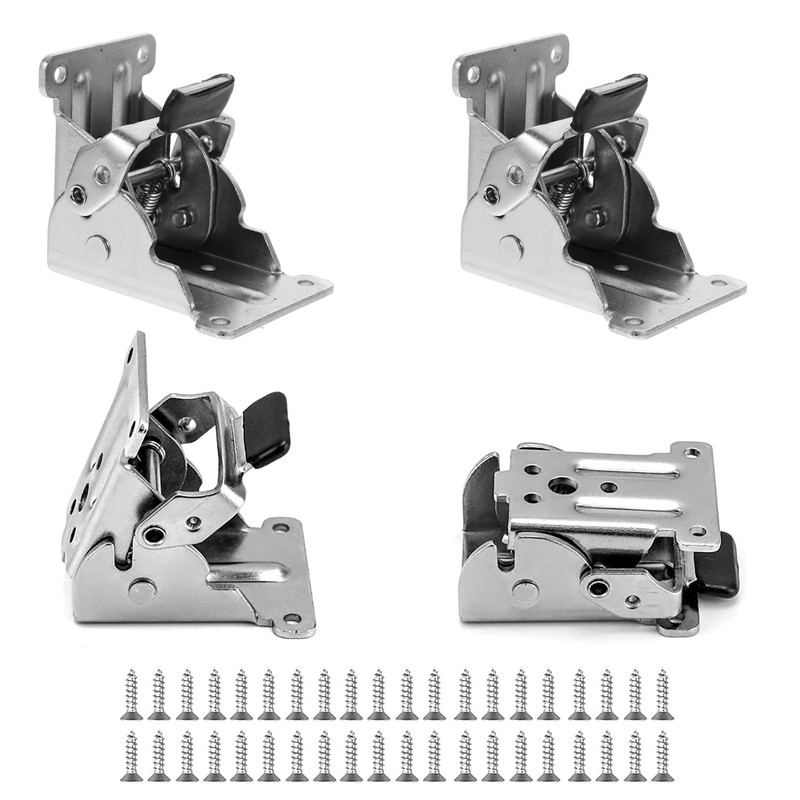 DUOCIYUAN Folding Hinge with Locking 4 Pieces Table Legs Foldable 0-90 Degree Self-Locking Folding Hinge Support Bracket Folding Console with Screws for Table Bed Cabinet Hinge (Silver)