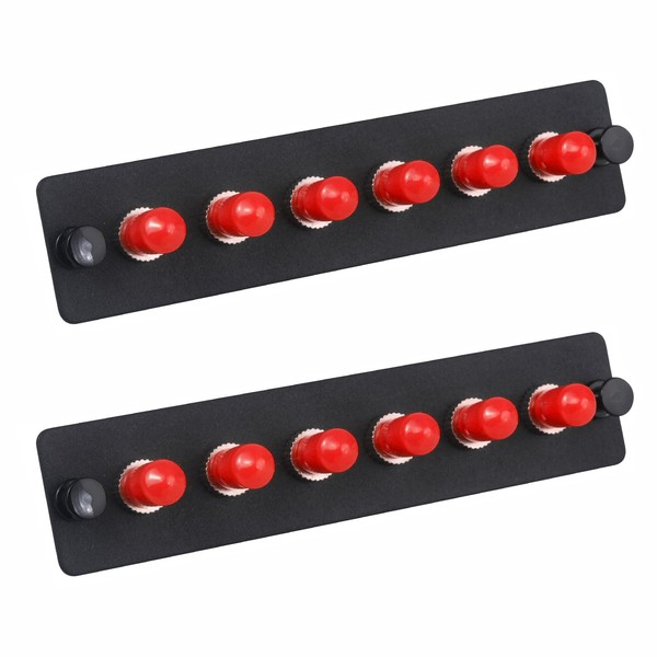 Duogalia 2-Pack 6 Simplex ST Fiber Patch Panel with Simplex Singlemode Red ST Adapters, 6 Fiber Ports