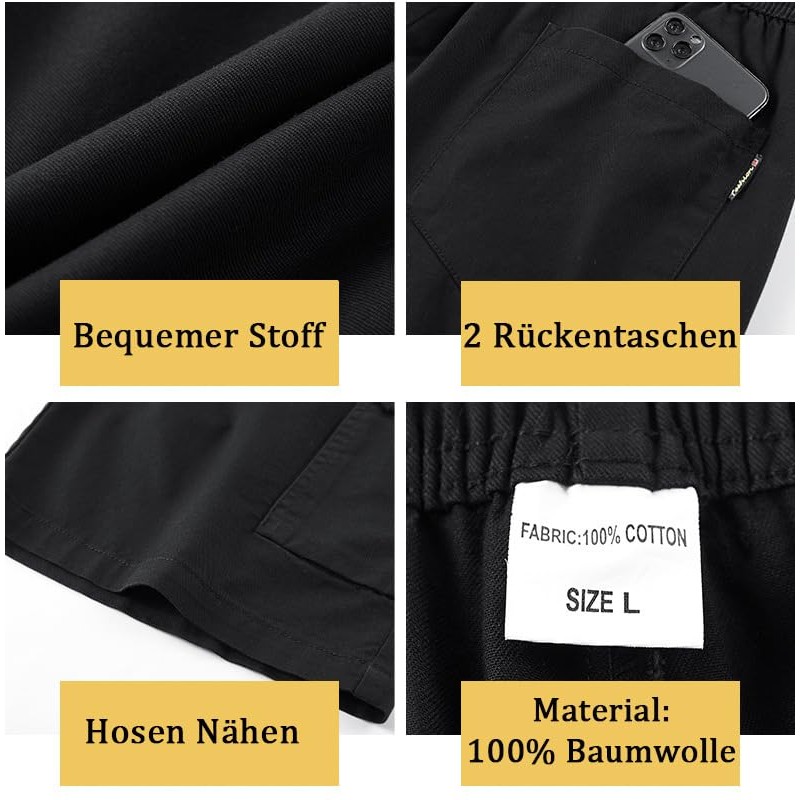 DUOLUVA Cargo Shorts Men's Work Trousers Men's Short Summer Pants Men Elastic Waist Universal Fit, black, L