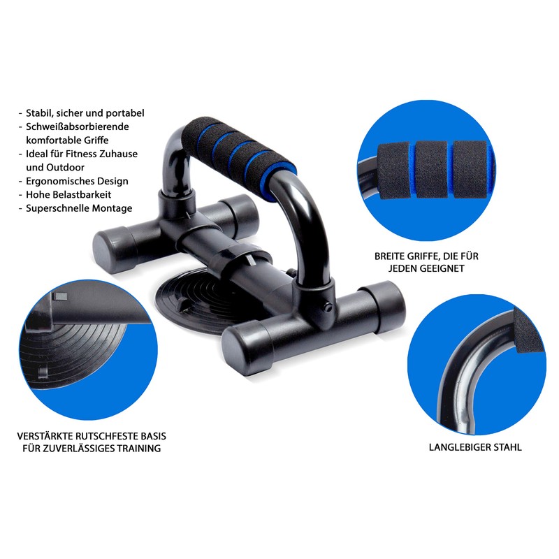 - Comfort: Our push-up bar is extremely stable and makes it much easier for you to train push-ups. The integrated suction cups ensure optimum grip on smooth surfaces.