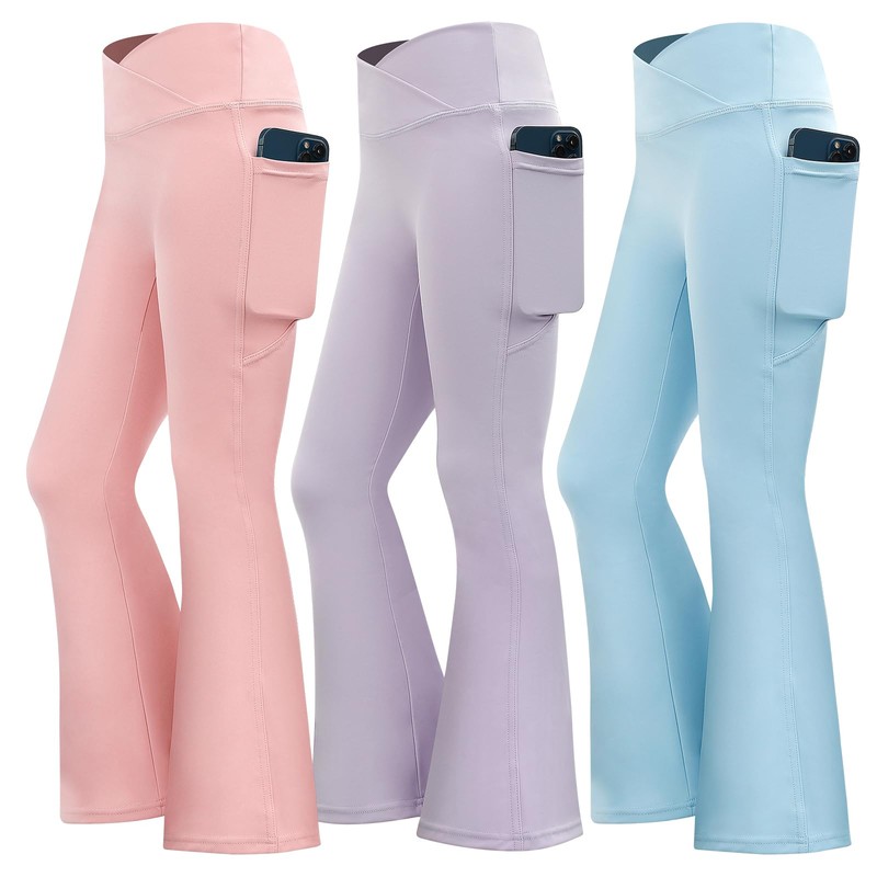 • Girls Crossover Pants: Our girls leggings used boot cut design, wide bell bottom leg with the V cross high-waisted design, which can easily fit for any figure