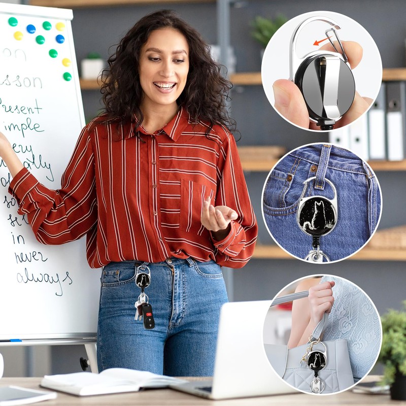 - RETRACTABLE ID REEL A set includes a long lanyard, which can be used to hang ID cards and phones, an extendable keychain that can be used without disassembling keys and cards from pockets and belt buckles without having to take them off repeatedly. And the card sleeve is suitable for most ID cards. The lanyard set can meet most usage requirements.