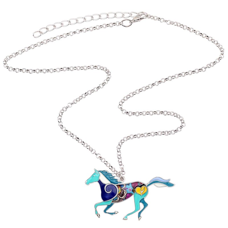 DUOWEI - Collar con colgante de caballo de correr esmaltado, regalos de caballo para mujer, Metal, no aplica