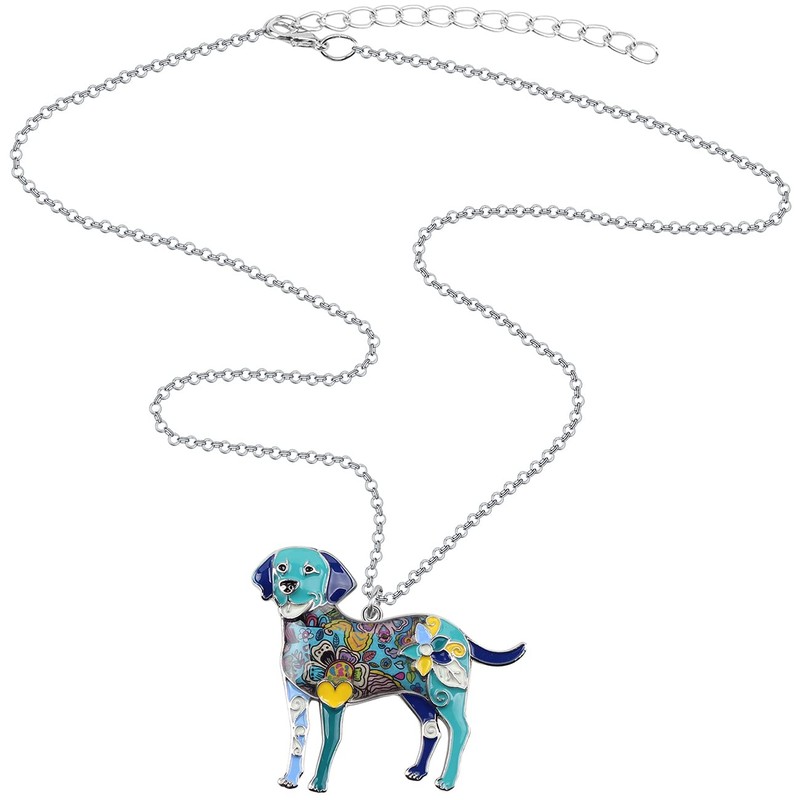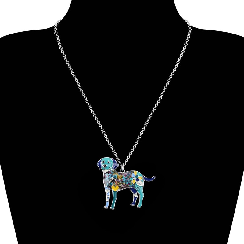 DUOWEI Cute Labrador Dog Pendant Necklace Zinc Alloy Floral Enamel Dog Jewelry Gifts (Navy)