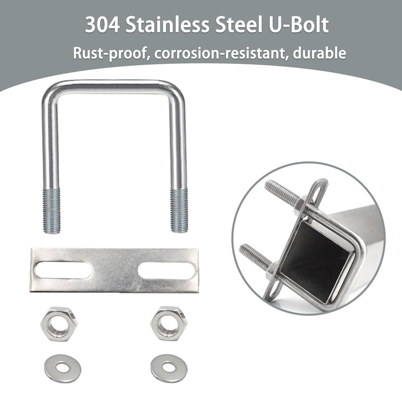 - Stainless Steel U Bolt This large U bolt is made of high quality 304 stainless steel, which is very strong and hard, with clear threads and fine workmanship, no deformation, corrosion resistance and durability, strong tightening force and strong bearing capacity. It is suitable for attaching and connecting mechanical parts or pipes