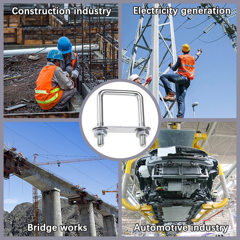 - Multi-purpose U-shaped screws: M10 U brackets can be used for fixing pipes, fixing workshop equipment and fixing bicycles, as well as towing cars or ships. U-bolts are suitable for construction, automotive, household, industrial, ship, plumbing, garden and other applications