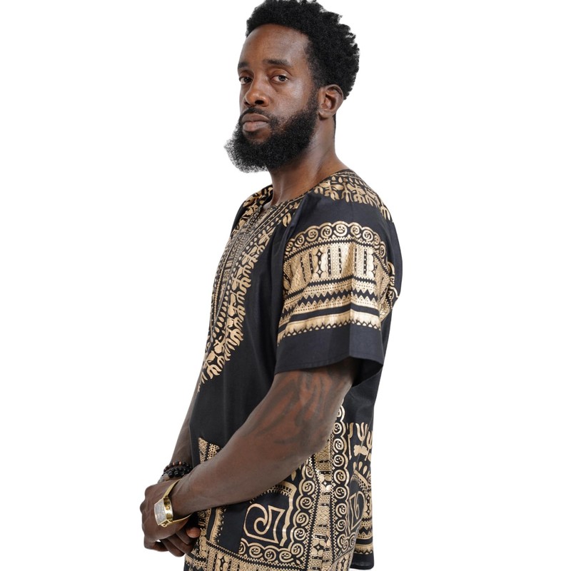 Dupsie's Black and Gold African Dashiki Shirt - 4XL
